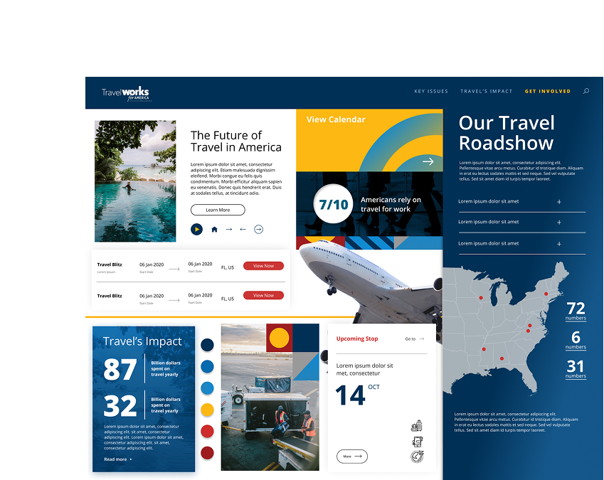 During my time at Prologue, I contributed to the development of the Travel Works for America campaign site, an important initiative highlighting the economic impact of the U.S. travel and tourism industry. The site aimed to educate and engage policymakers and the public to support industry recovery and growth. I helped create the moodboard that guided the site’s visual direction, collaborated on wireframing, designed both desktop and mobile layouts, and provided creative direction to ensure clear, compelling storytelling aligned with campaign goals.